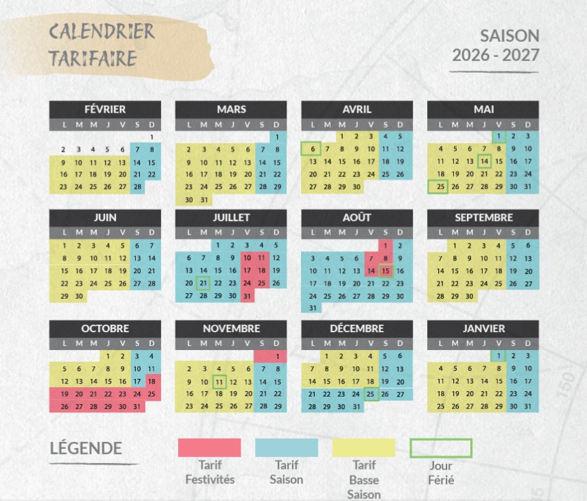 Selon calendrier tarifaire dans la galerie photo ci-dessus